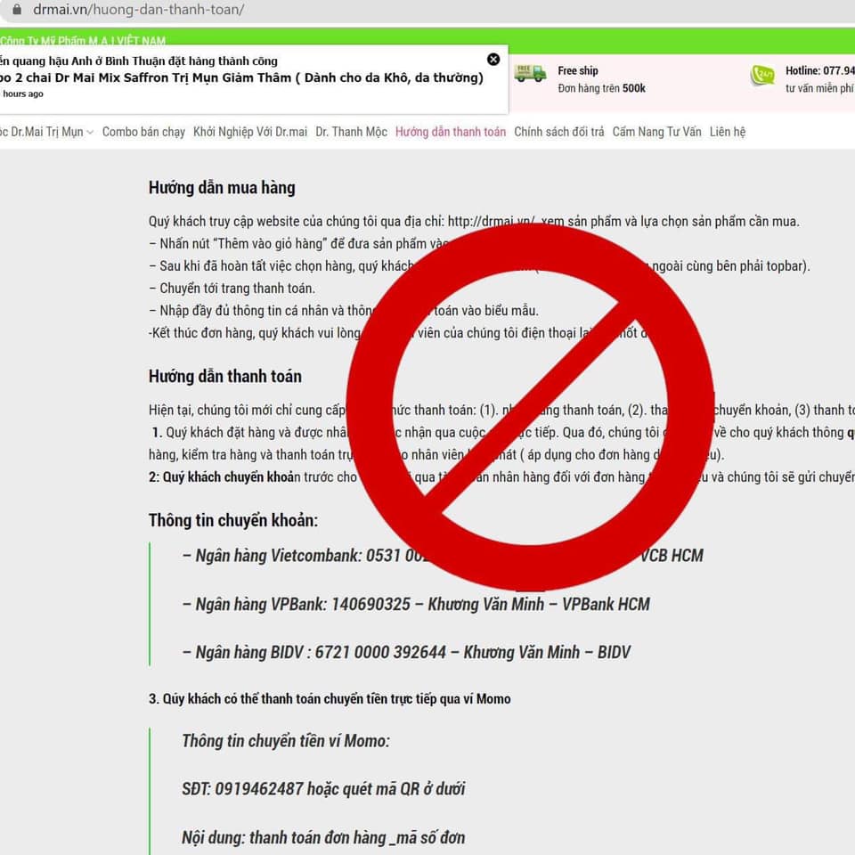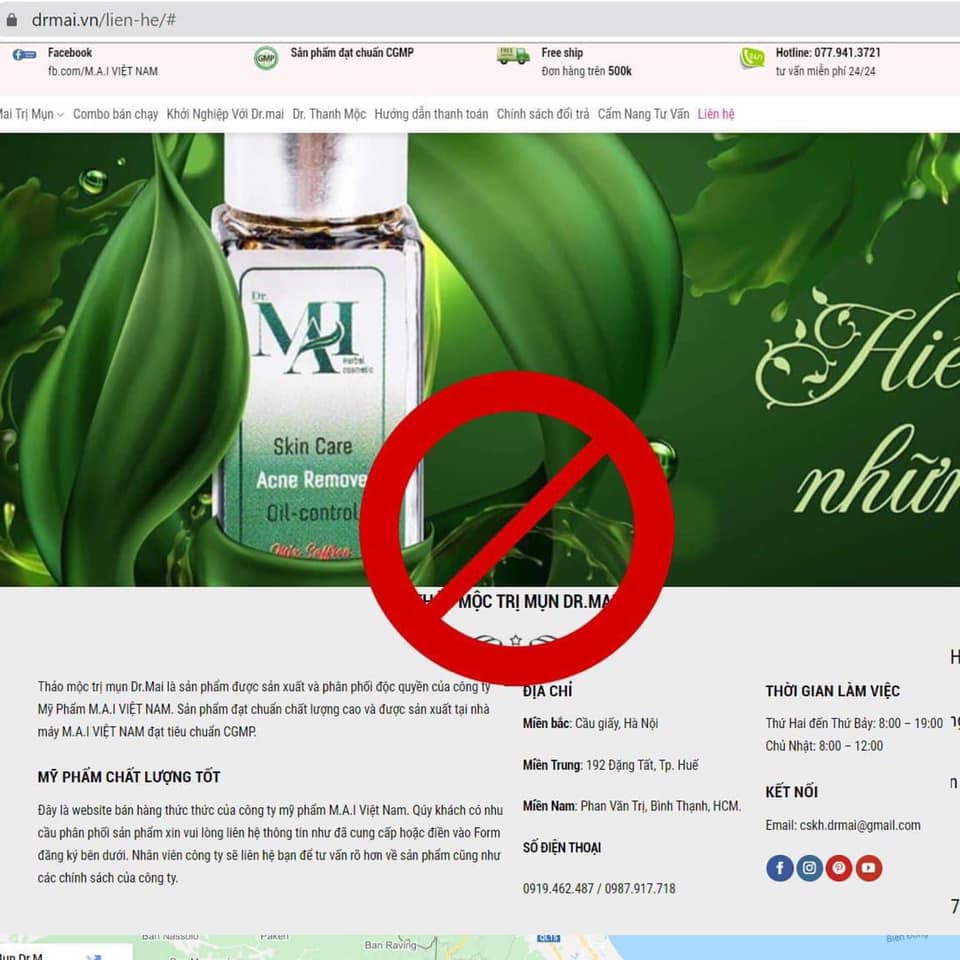 Mọi người hãy lưu ý và tránh càng xa càng tốt. Sau này nếu còn ai khi lỡ mua phải sản phẩm Dr Mai hỗ trợ trị mụn ở website này và bị vấn đề về da thì hãy inbox ngay cho công ty M.A.I VIỆT NAM !!!