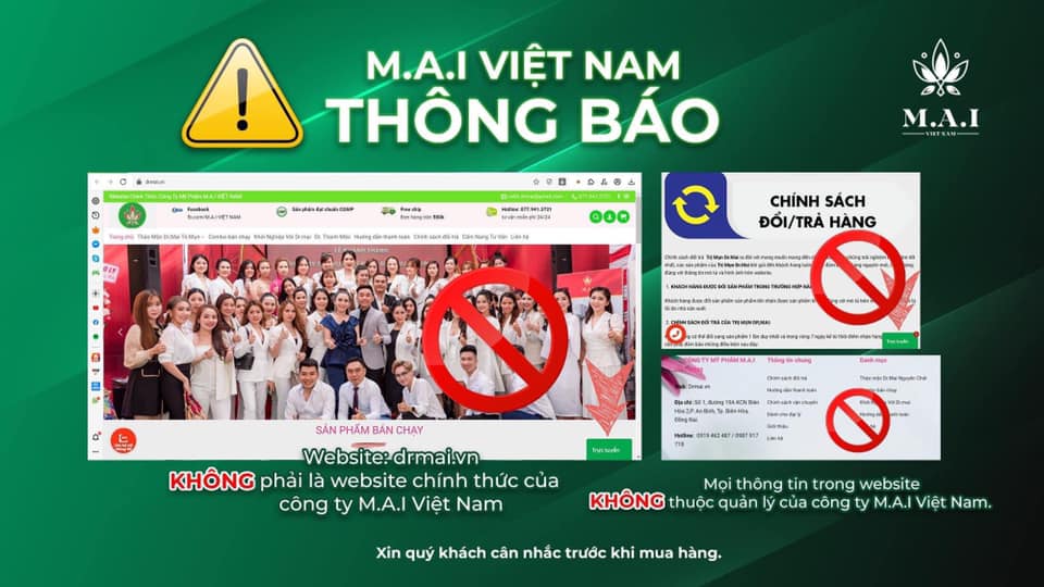 Trang wed: drmai.vn là trang wed giả mạo và bán sản phẩm hàng giả hàng kém chất lượng. Công ty M.A.I VN đã điều tra và vào cuộc xử lý và mong khách hàng hãy thông thái chọn nơi uy tín để mua hàng