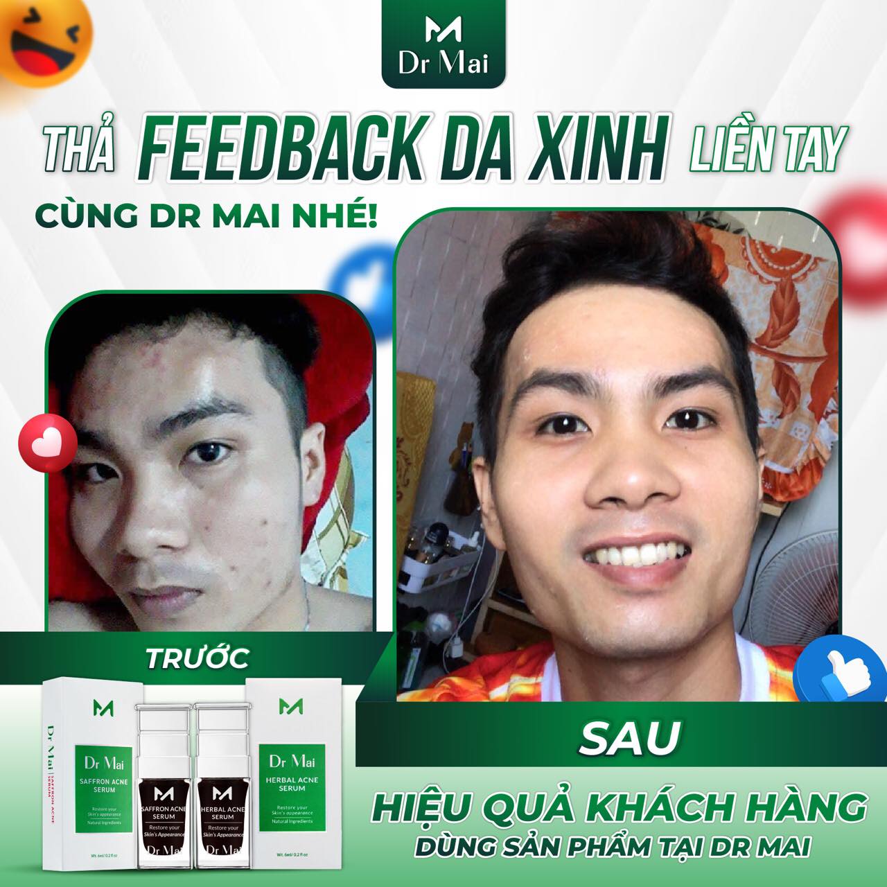 Cùng chiêm ngưỡng feeback tuyệt vời từ Dr Mai để thấy được hiệu quả, thay đổi đáng kể làn da của các khách hàng yêu. Chỉ cần trải nghiệm theo đúng liệu trình và hướng dẫn của Dr Mai thì dù da bị mụn, .. nặng cỡ nào cũng đều trở nên sạch mụn, mờ nám, trắng sáng, mịn màng và đẹp không tỳ vết.