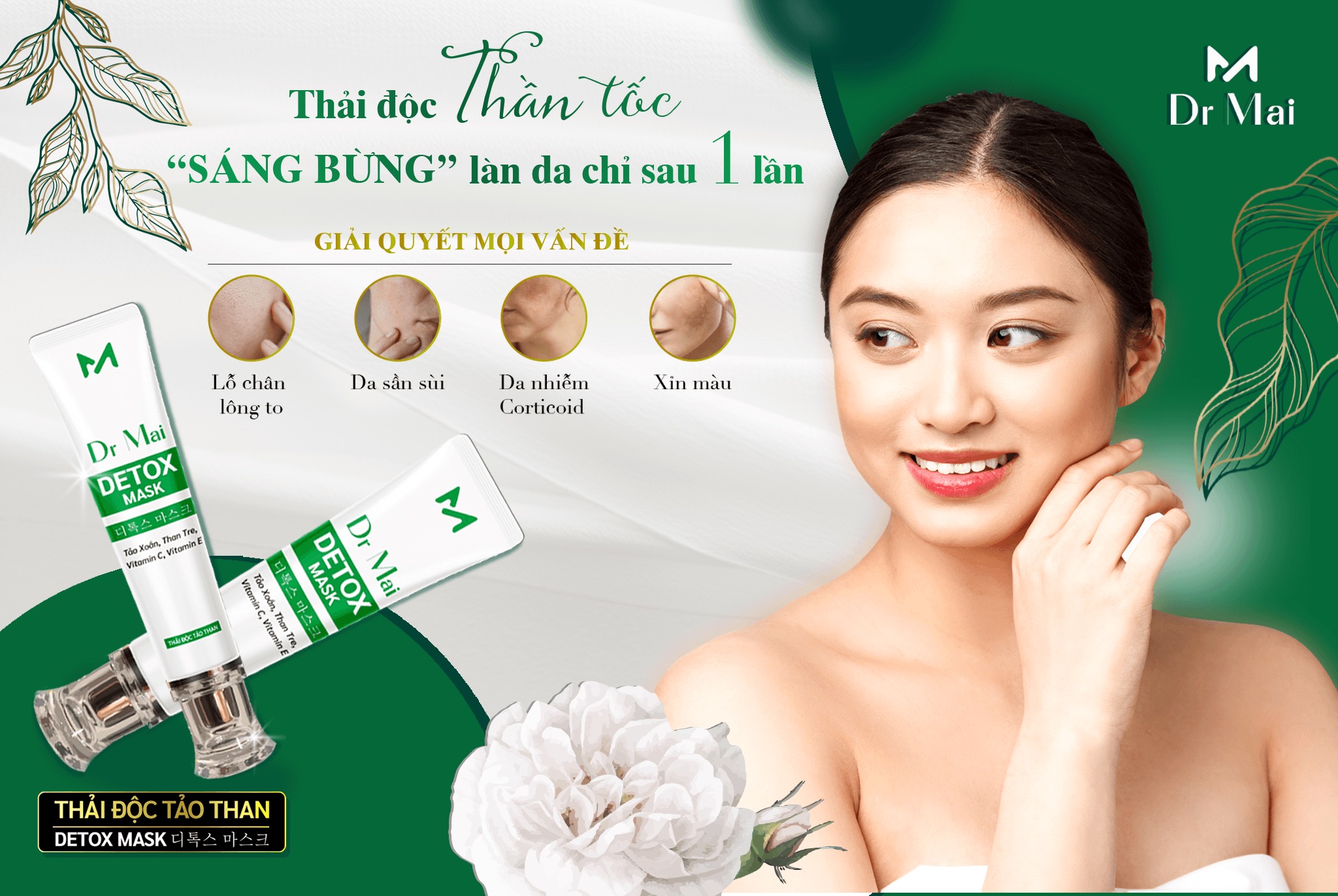 1.3. DETOX MASK được biết đến với loại sản phẩm vô cùng xịn sò cho da: đào thải các độc tố, loại bỏ các vi khuẩn, bụi bẩn tích tụ bên trong làn da, thải độc da, điều tiết dầu nhờn, phục hồi da bị hư tổn, giúp da khoẻ từ bên trong. Hãy luôn sử dụng sản phẩm Dr Mai detox 15 phút mỗi tuần, chắc chắn làn da sẽ thay đổi bất ngờ.