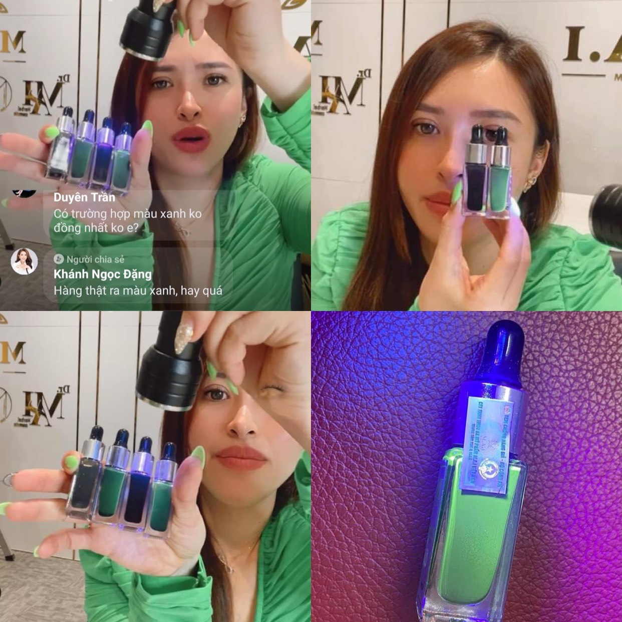 Nhưng cuối cùng khi dùng đèn les soi, 1 chi tiết cuối cùng để đảm bảo, hàng thật thì sẽ mãi là hàng thật, có muốn fake cũng ko dc. Chúng nó có thể giả bên ngoài để lừa khách hàng nhưng chất nước bên trong, cái cốt lõi sp thì ko bao giờ nhái được, vì đây là sp gia truyền, cty đã khóa công thức độc quyền, có pha có trộn kiểu gì cũng ko ra dc. Và 100% hàng giả khi soi vẫn là màu đen, hàng thật thì ra màu xanh ngọc bích rất đẹp.