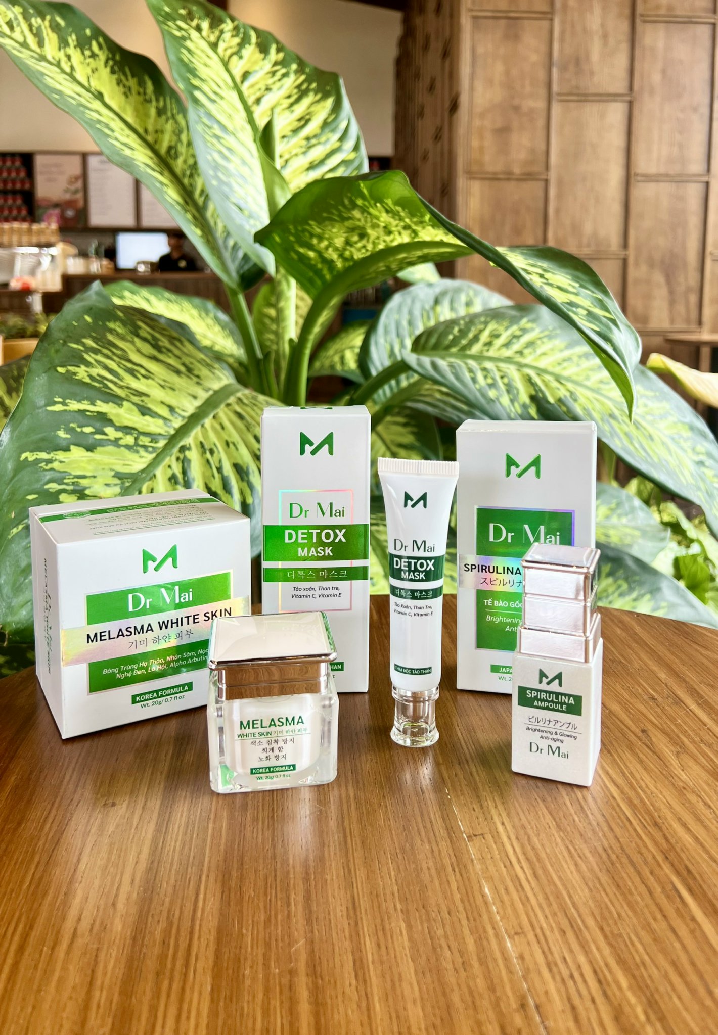 Trị nám hiệu quả cùng Combo trắng da ngừa Nám Dr Mai Melasma White Skin & Tế Bào Gốc Tảo Xoắn Dr Mai Spirulina Ampoule.