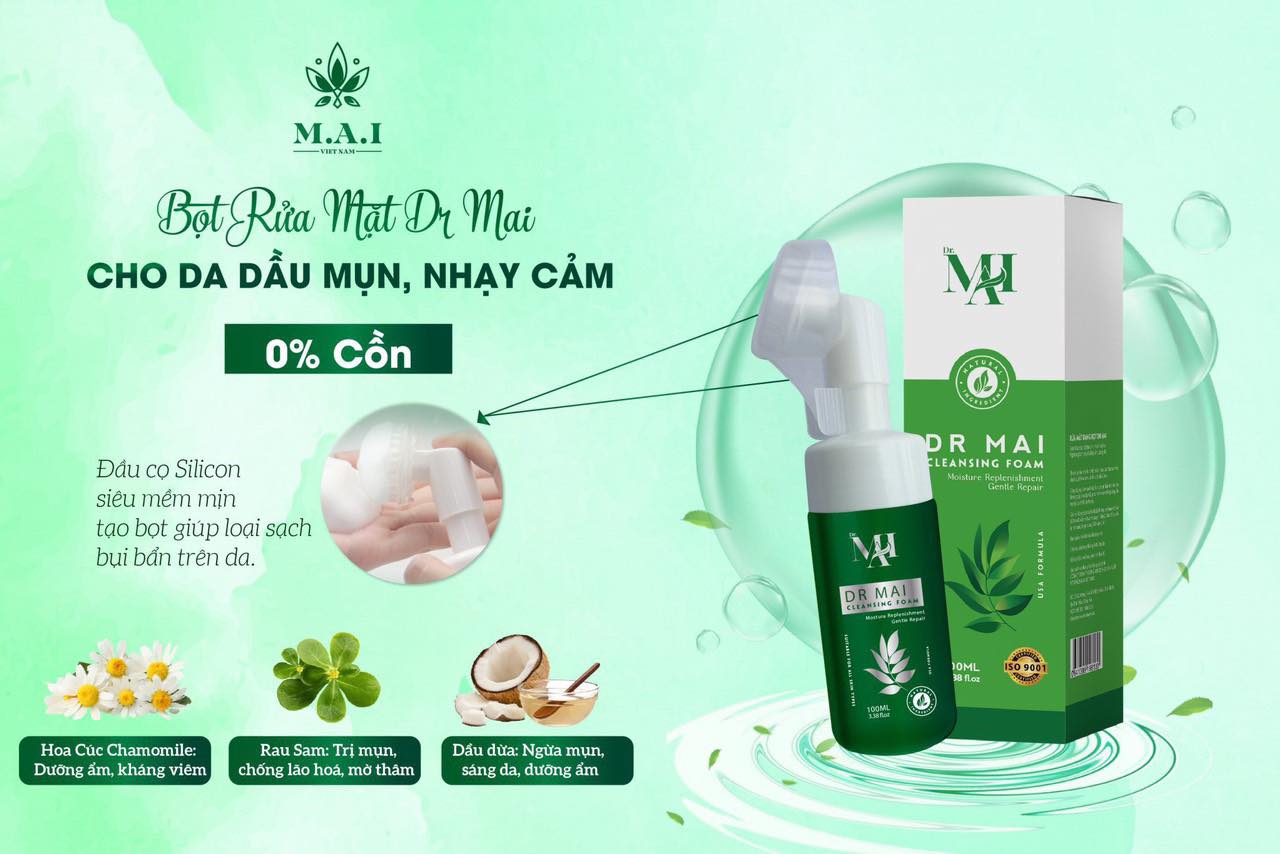 - Rửa mặt đúng cách 2 lần mỗi ngày cùng sữa rửa mặt Dr Mai dịu nhẹ để rửa trôi bụi bẩn, sợi bã nhờn tích tụ. Sửa rửa mặt Dr Mai với đặc điểm thành phần 100% tự nhiên, lành tính, hiệu quả vượt bậc chính là giải pháp tối ưu giúp bạn giữ mãi làn da hồng hào, khoẻ mạnh. Làm sạch chính là bước quan trọng nhất trong quá trình chăm sóc da, vì vậy chị em hãy sáng suốt khi lựa chọn sản phẩm phù hợp và tốt nhất cho da của mình.