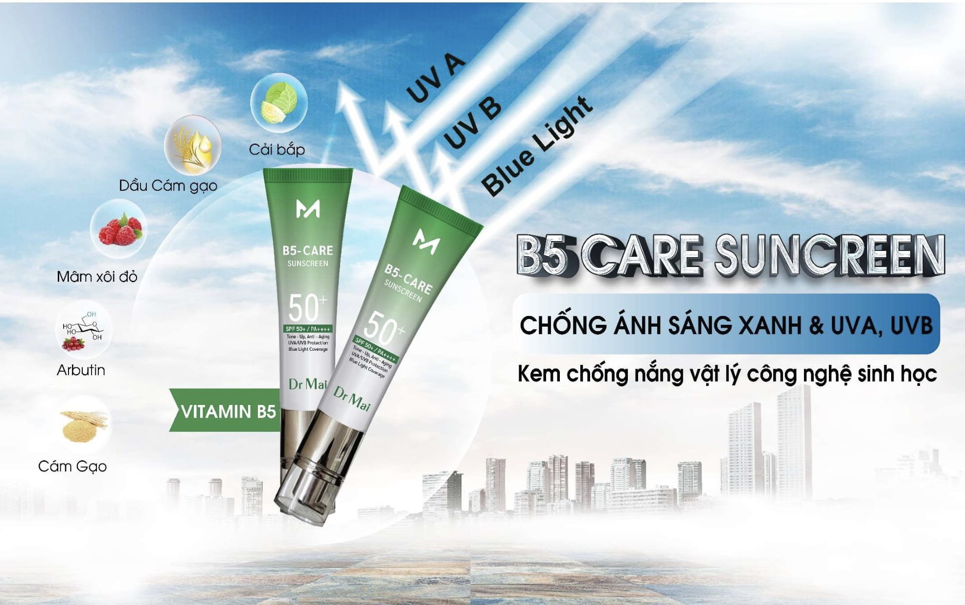 Kem chống nắng B5 là kem chống nắng da ban ngày kết hợp chống nắng cho da tối ưu, có thể giải quyết vấn đề thường gặp trong mùa hè ấy của phái đẹp bởi nó được tích hợp 3 công dụng trong 1: Dưỡng trắng, nâng tông tự nhiên, an toàn mọi loại da, giữ ẩm sâu hoạt động cả ngày.