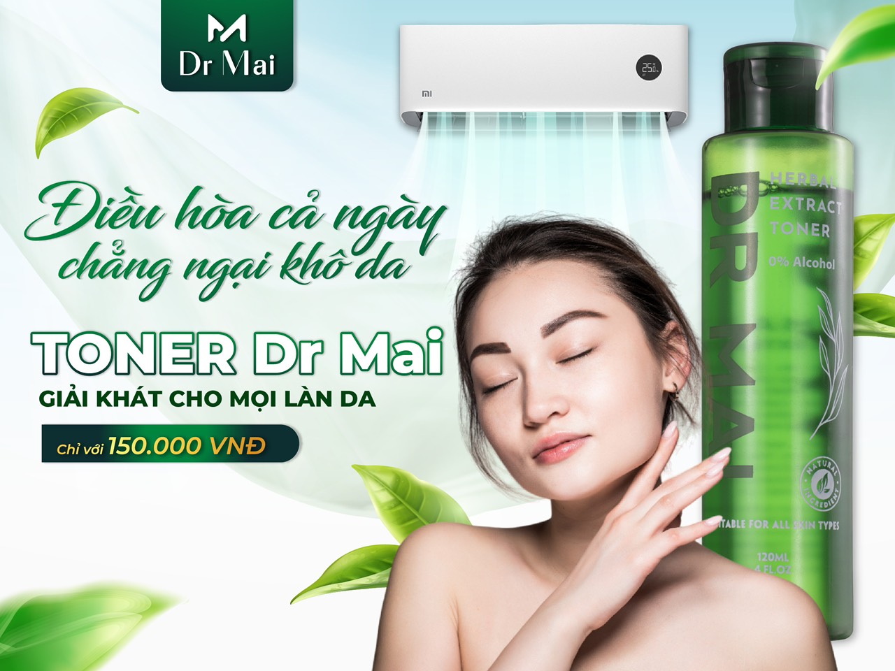 - Nước cân bằng da toner Dr Mai: Không chứa cồn, dịu nhẹ cho da, có thể làm xịt khoáng, cấp ẩm tức thì cho da. Với công thức dịu nhẹ kết hợp với các nguyên liệu thiên nhiên cao cấp, với chiết xuất từ thiên nhiên giúp toner Dr Mai giúp dưỡng da, giảm bã nhờn, se khít lỗ chân lông giúp da mềm mịn. ngoài ra toner Dr Mai cân bằng độ PH sau khi rửa mặt và cung cấp độ ẩm dịu nhẹ sau khi dùng detox mask.