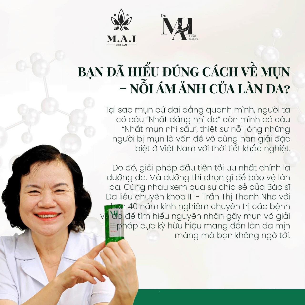 BS chuyên khoa Da Liễu Trần Thị Thanh Nho nói gì về các thành phần trong trị mụn Dr Mai và các đối tượng nên sử dụng Dr Mai