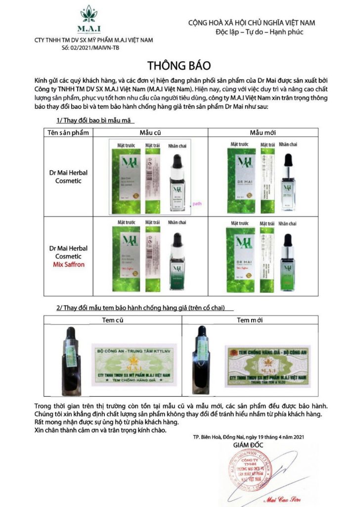 Để mua đúng Dr Mai chính hãng công ty M.A.I Việt Nam khách hàng mua qua hệ thống công ty từ các Chi nhánh, Đại lý, Nhà phân phối, Giám Đốc có banner chính hãng công ty M.A.I Việt Nam cho đảm bảo. Tuyệt đối không mua hàng ở những nơi mà không biết người bán là ai như sàn thương mại điện tử or nhưng nơi có giá bán rẻ hơn giá công ty niêm yết vì đa số là hàng nhái, hàng trôi nổi trà trộn không bảo hành đầy đủ và không an toàn cho khách hàng (Lazada, shoppe, sendo, các shop mỹ phẩm giá rẻ, các trang facebook và TikTok bán giá rẻ).