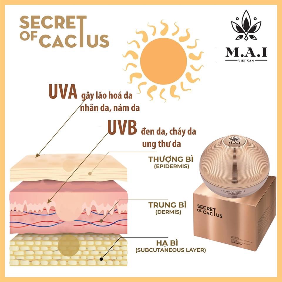 Chỉ số SPF chỉ cho chúng ta biết được khả năng bảo vệ da khỏi tia UVB của kem chống nắng có trong Secret Of Cactus? Tia cực tím có 3 loại phổ biến: UVA, UVB và UVC.