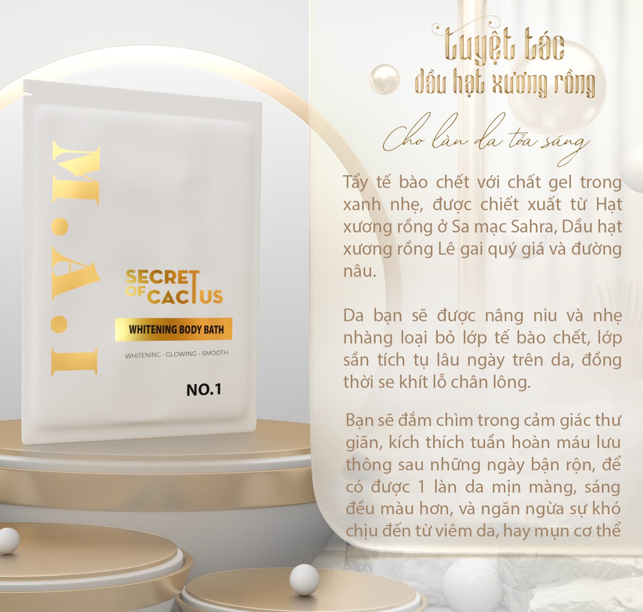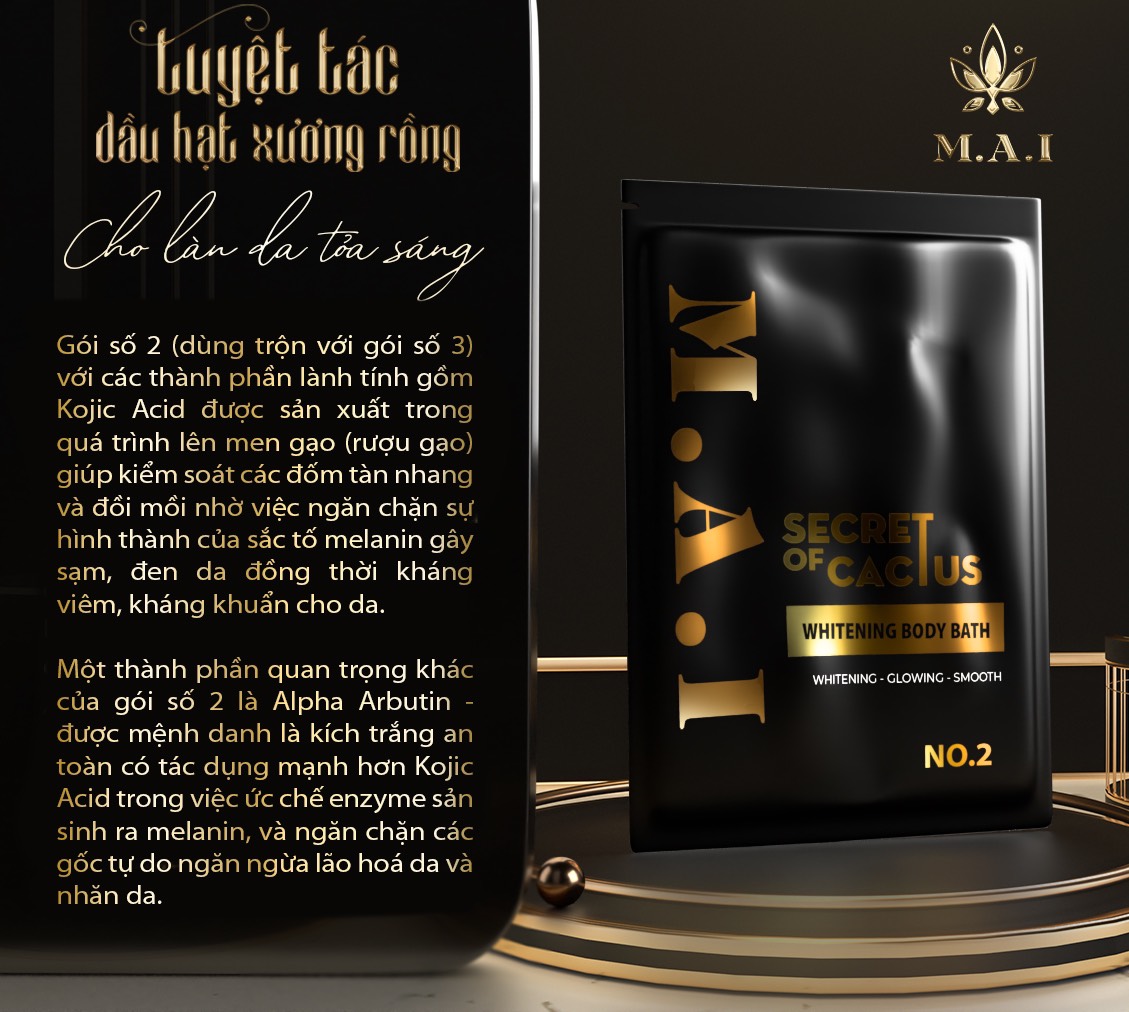 Set tắm trắng Secret Of Cactus chuẩn Hàn của công ty M.A.I Việt Nam ra đời. Set tắm trắng Secret Of Cactus giúp da body bật 2 tông sau 1 lần sử dụng, set tắm với thành phần được chiết xuất từ Dầu hạt xương rồng với hàm lượng vitamin E chống lão hoá gấp 150% dầu Argan.