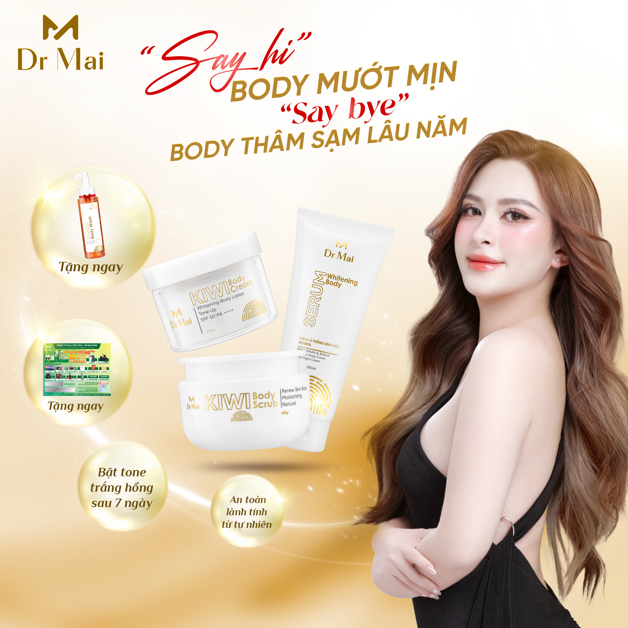 Hơn cả làm đẹp da, combo 3 siêu phẩm DR MAI là “bí quyết” khơi mở vẻ đẹp vóc dáng mê ly, trắng hồng, thu hút mọi ánh nhìn. Mang lại hiệu quả nhanh chóng, bật tone tự nhiên chỉ sau 7 ngày. Combo gồm Kiwi Body Cream, Màng ủ trắng sinh học Serum Body Retinol và Tẩy tế bào chết Kiwi Body Scrub sẽ mang lại công dụng ưu việt khi kiên trì sử dụng: