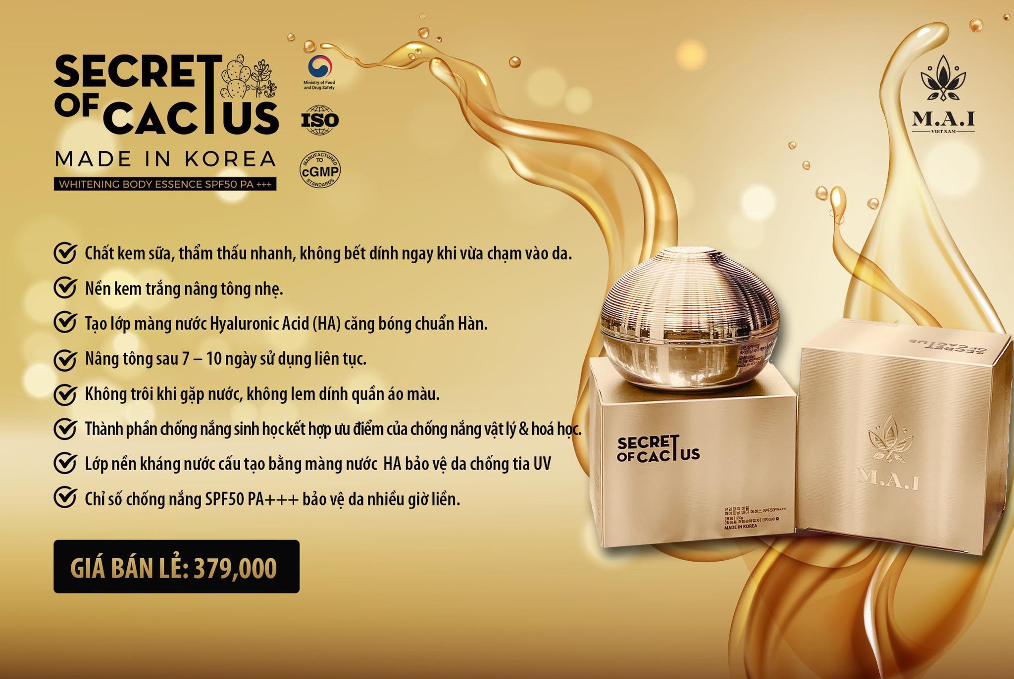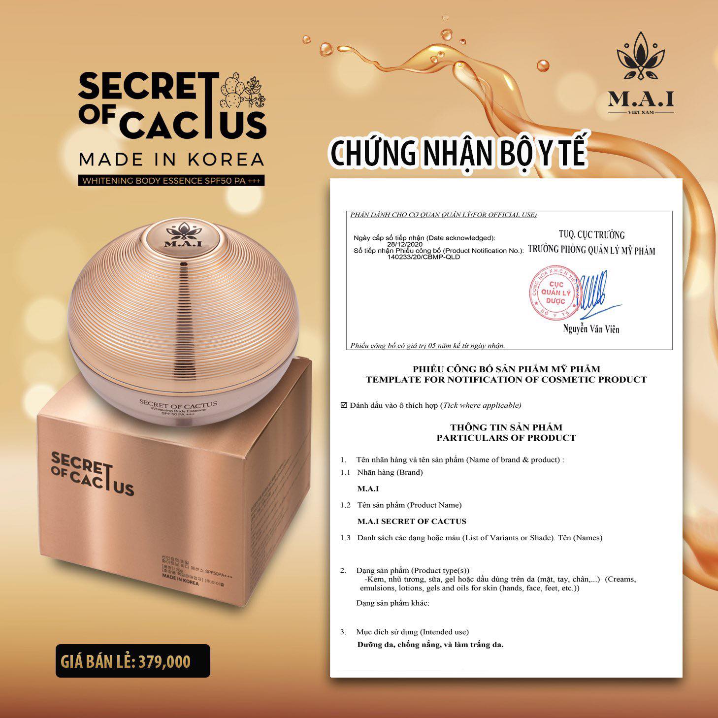 Vì vậy, M.A.I Việt Nam chính thức bắt tay với nhà sản xuất Mỹ phẩm Hàn Quốc mang đến "Tinh chất trắng da" BODY SECRET OF CACTUS - Bí mật của xương rồng chỉ dành riêng cho bạn.