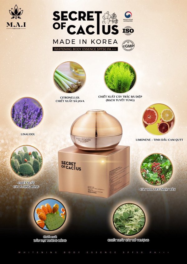 Vậy thì từ ngay hôm nay hãy chăm dưỡng da và chọn ngay cho mình sản phẩm dưỡng body Secret Of Cactus M.A.I Việt Nam ngay nhé.