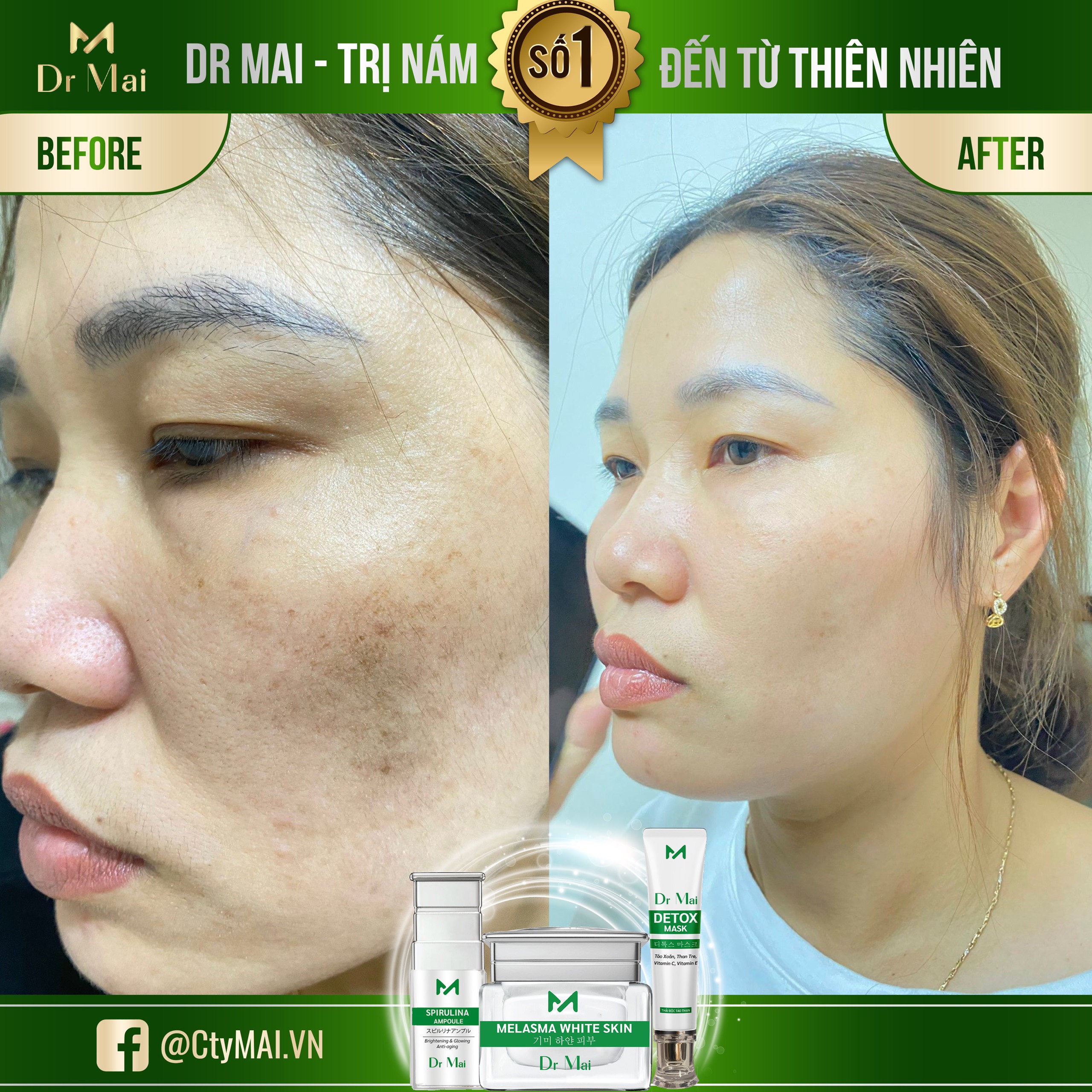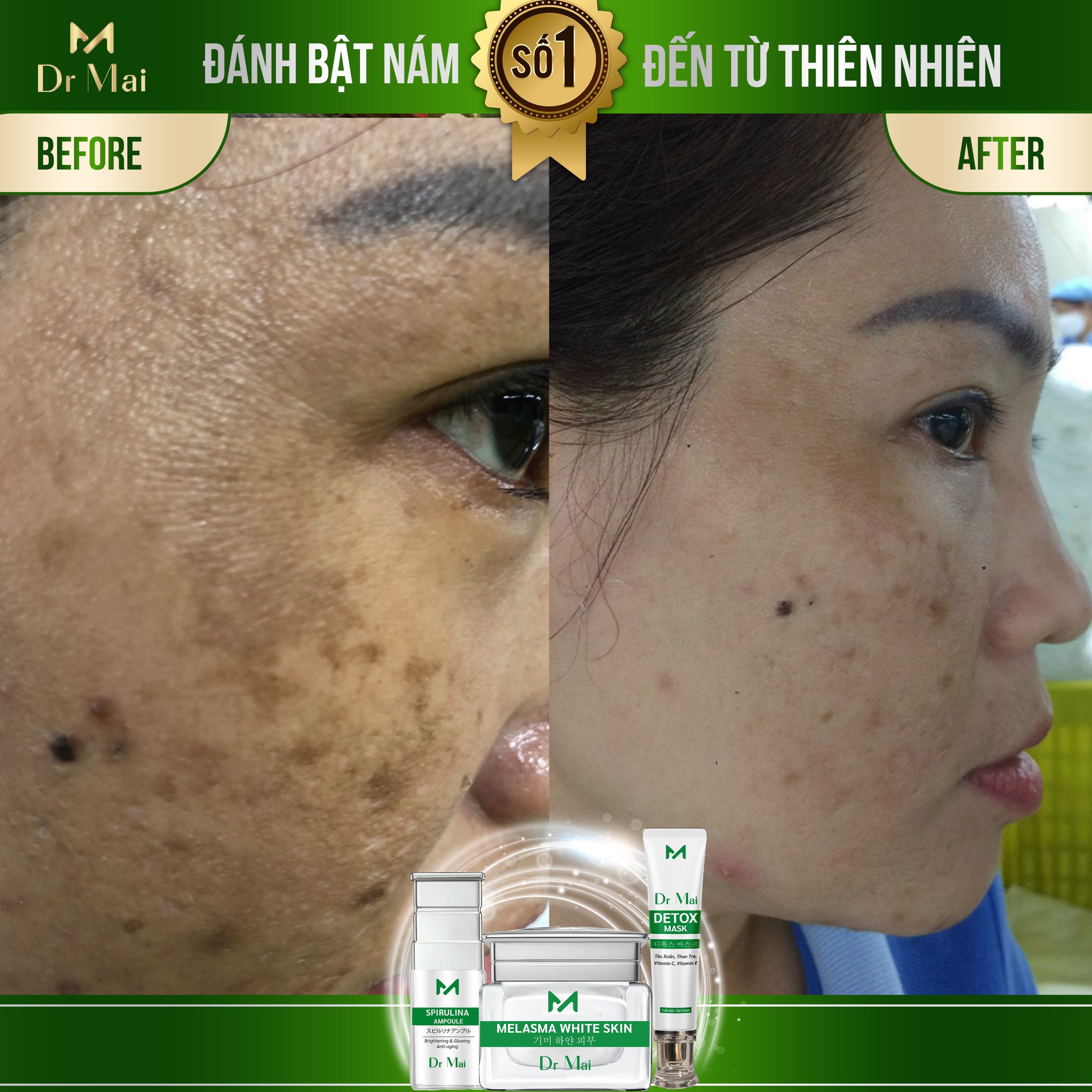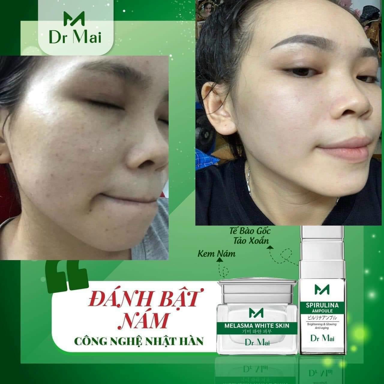 Nhờ hiểu được sự lo lắng của chị em, M.A.I VIỆT NAM đã cho ra mắt các dòng sản phẩm combo trắng da ngừa Nám Dr Mai Melasma White Skin & Tế Bào Gốc Tảo Xoắn Dr Mai Spirulina Ampoule giúp chị em đầy lùi nám và làm mờ hiệu quả. Từ đó tạm biệti làn bị khuyết điểm do thời gian, do ảnh hưởng của môi trường và da bị các nốt mụn, sần sùi “da gà”, giúp cải thiện tình trạng viêm nang lông nữa đó nhé. Dr mai Melasma White Skin và tế bào gốc tảo xoắn Dr Mai Spirulina Ampoule là dòng sản phẩm dưỡng trắng mờ thâm nám “ĐÁNH THỨC VẺ ĐẸP” của mọi làn da giúp nuôi dưỡng làn da mềm mịn, trẻ hoá, trắng sáng, căng bóng, nám sạm mờ dần và làn da ngày càng khoẻ đẹp hơn.