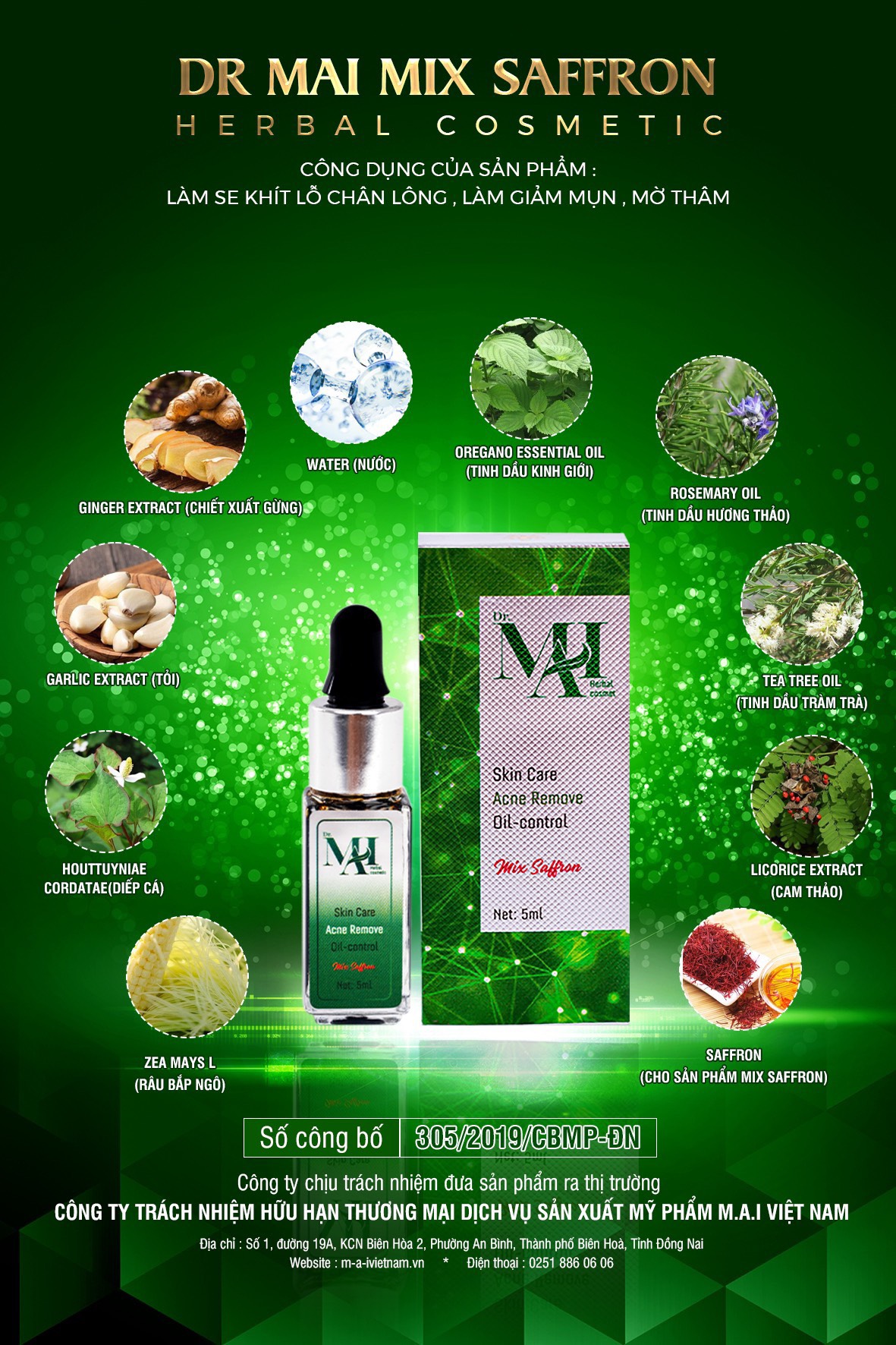 Trong khi đó, Dr Mai Mix saffron lại có công dụng chủ đạo về cấp ẩm, trị vết thâm hơn là trị mụn.