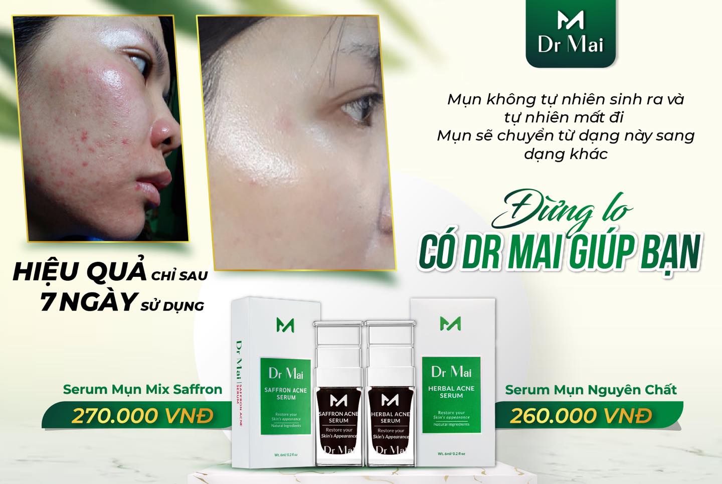 Bài viết trên đây chắc hẳn đã giúp bạn hiểu rõ hơn về bộ đôi serum trị mụn Dr Mai có tốt không rồi. Hy vọng qua đây bạn đã bỏ túi cho mình thêm nhiều thông tin hữu ích để lựa chọn sản phẩm trị mụn tốt nhất cho bản thân rồi. Chúng tôi mong muốn đem công thức thuốc lá gia truyền trị mụn hiệu quả - an toàn DR MAI đến với mọi người, xóa bỏ nỗi mặc cảm do mụn, lấy lại sự TƯƠI TRẺ và TỰ TIN