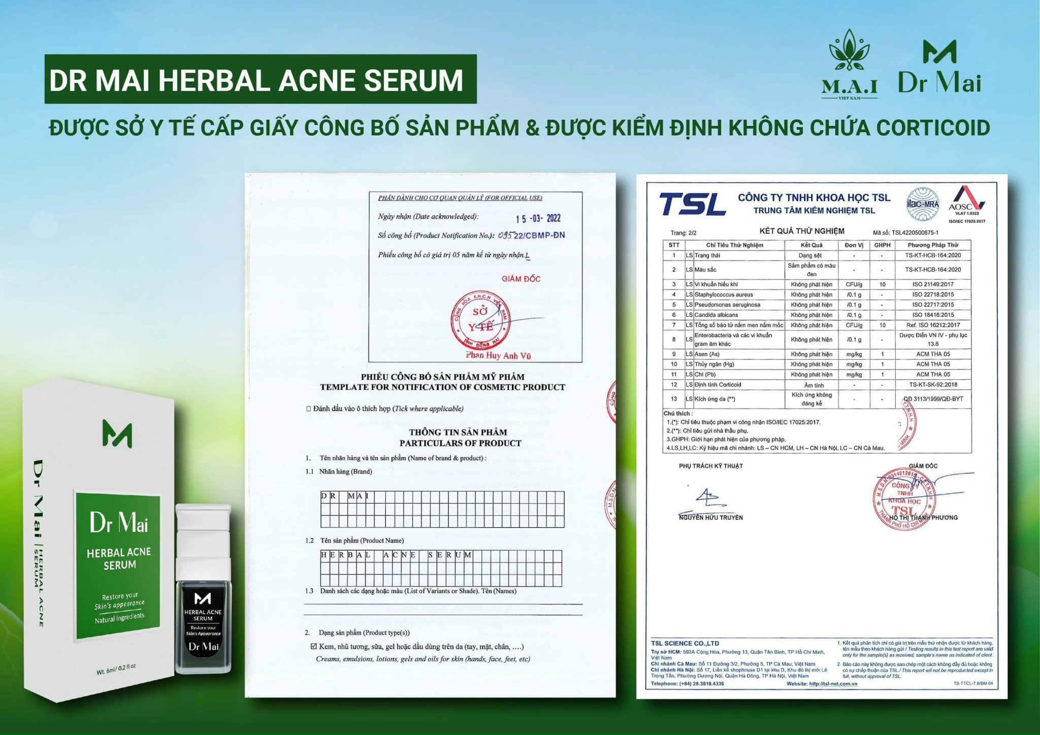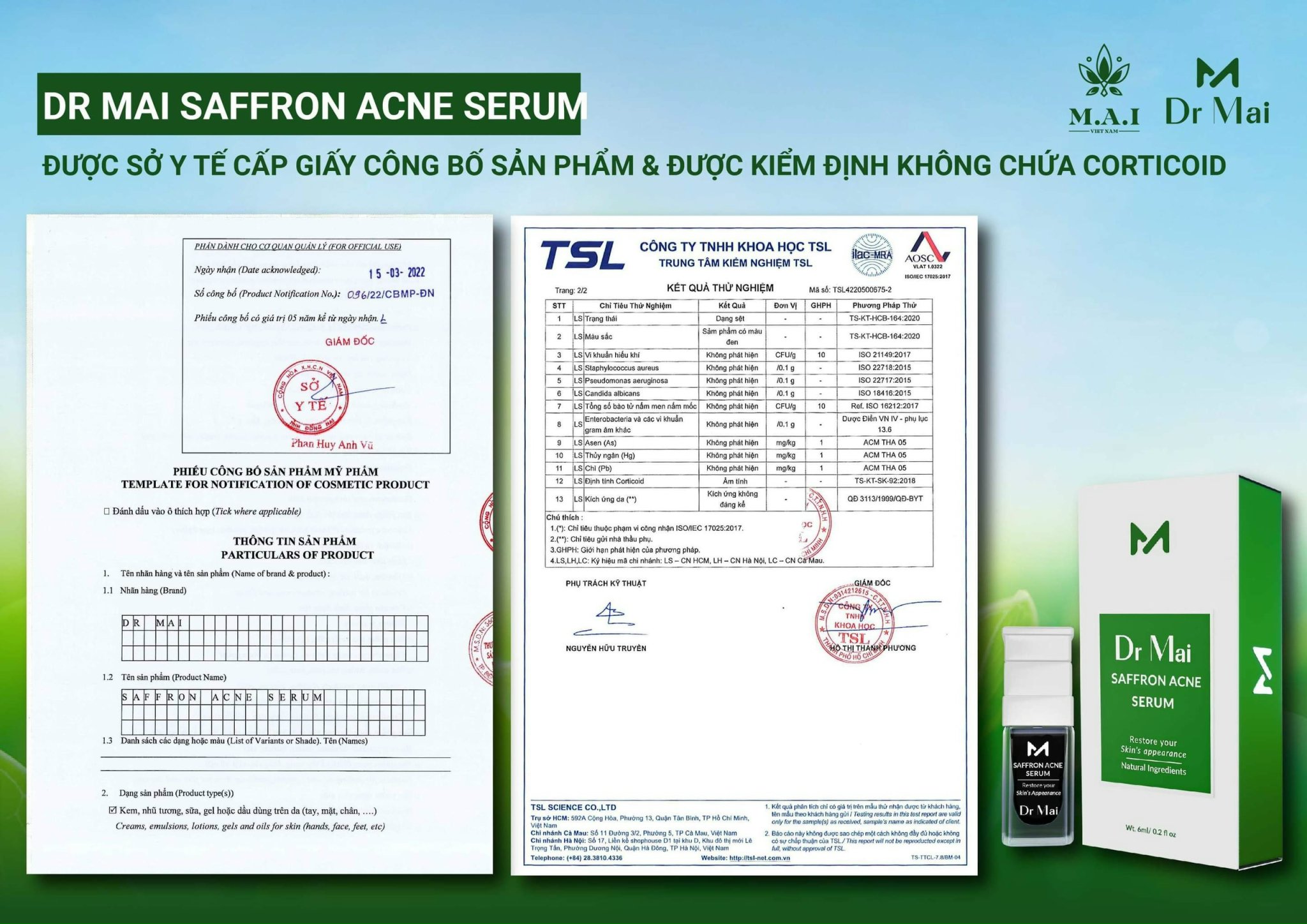 Bên cạnh đó sản phẩm serum trị mụn này cũng có đầy đủ giấy chứng nhận, giấy kiểm định của bộ Y tế nên chị em có thể an tâm về độ an toàn.