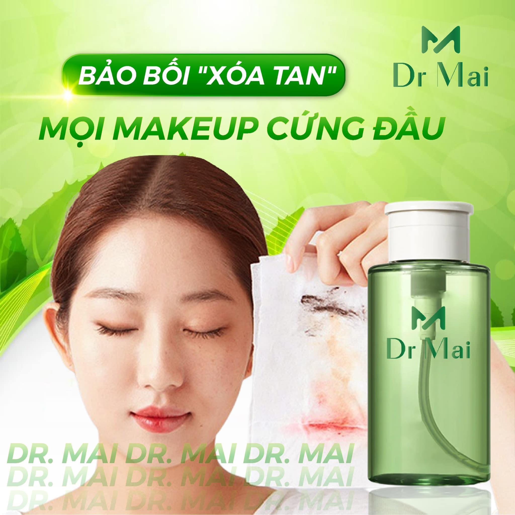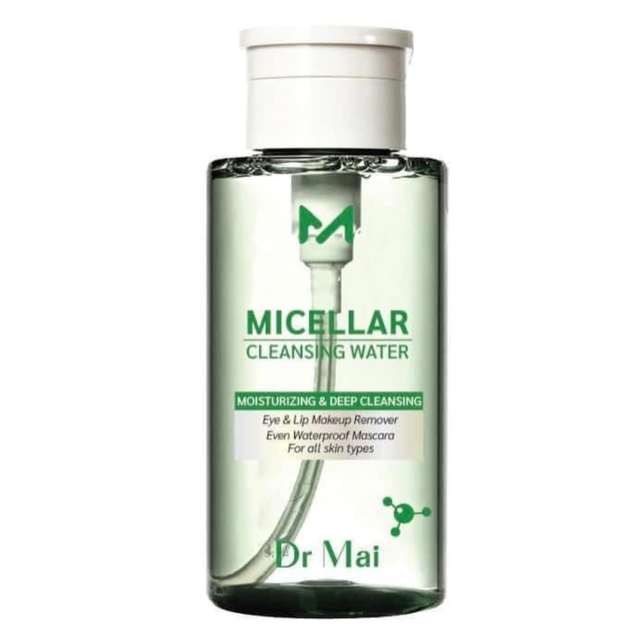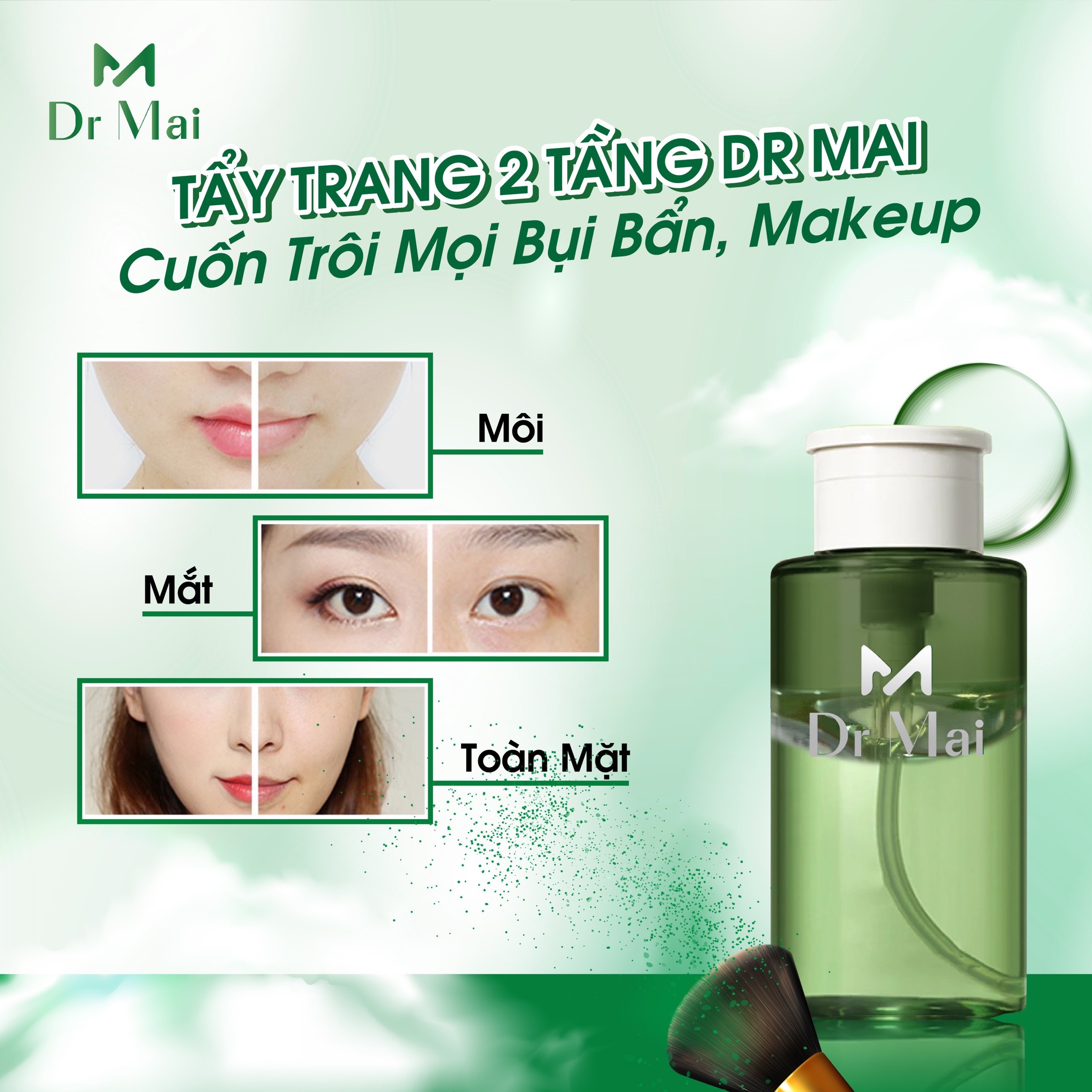 - Tẩy trang Dr Mai Micellarcho mắt môi và toàn mặt giúp loại bỏ hoàn toàn bụi mịn, lớp phấn trang điểm trên da.
