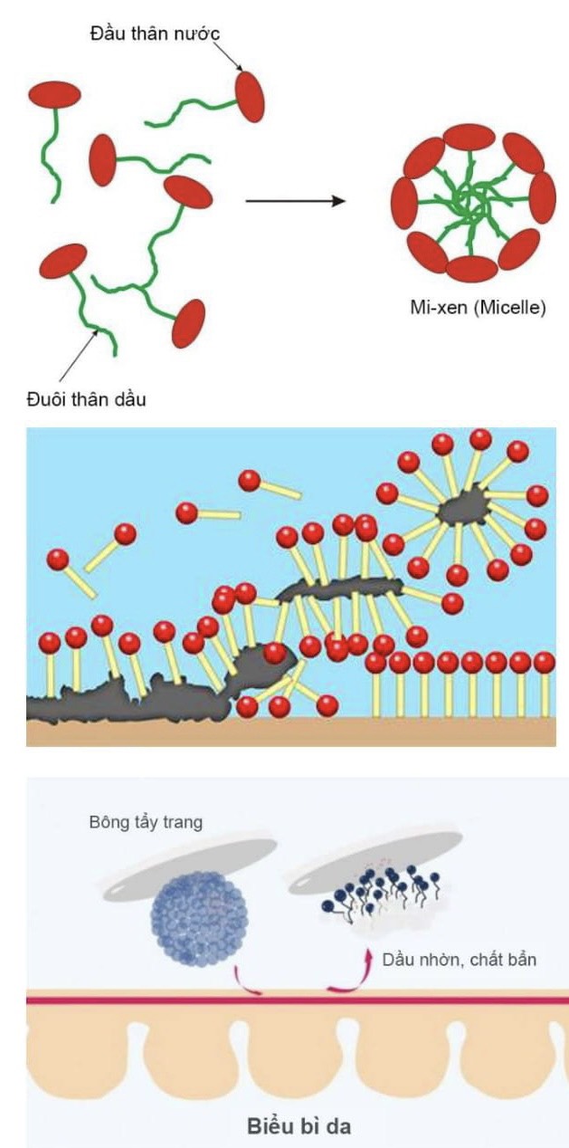 - Tẩy trang Dr Mai Micellar có thành phần Micellar Water gồm các chất hoạt động bề mặt có các đuôi thân dầu bắt lấy dầu thừa và các bụi bẩn trên da trong khi các đầu thân nước có khả năng giữ ẩm cho da, giúp giữ da sạch sẽ, ngậm nước và tươi mát.
