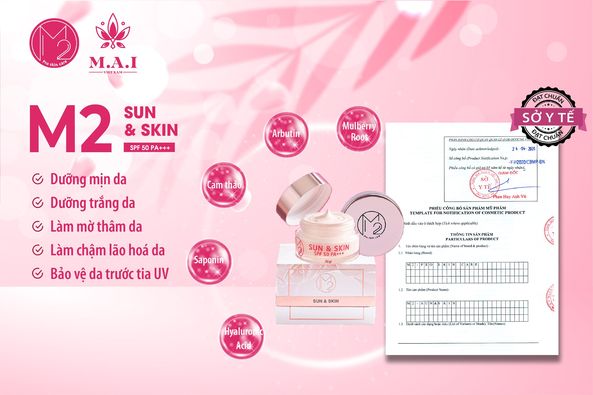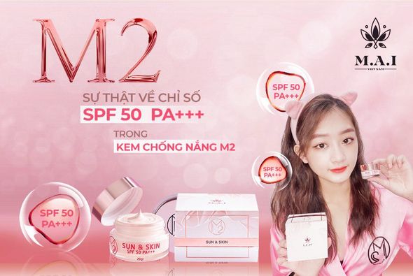 - Dưỡng da chống năng cùng kem face M2 Sun & Skin giúp ức chế hình thành sắc tố melanin làm đều màu da, giúp Chống nắng đến 8h liên tục, chống lão hoá, ngăn da nhăn và chảy xệ, cấp ẩm cho da mịn mướt, tạo thành màng khoá ẩm sau bước bôi serum 𝐌𝟐